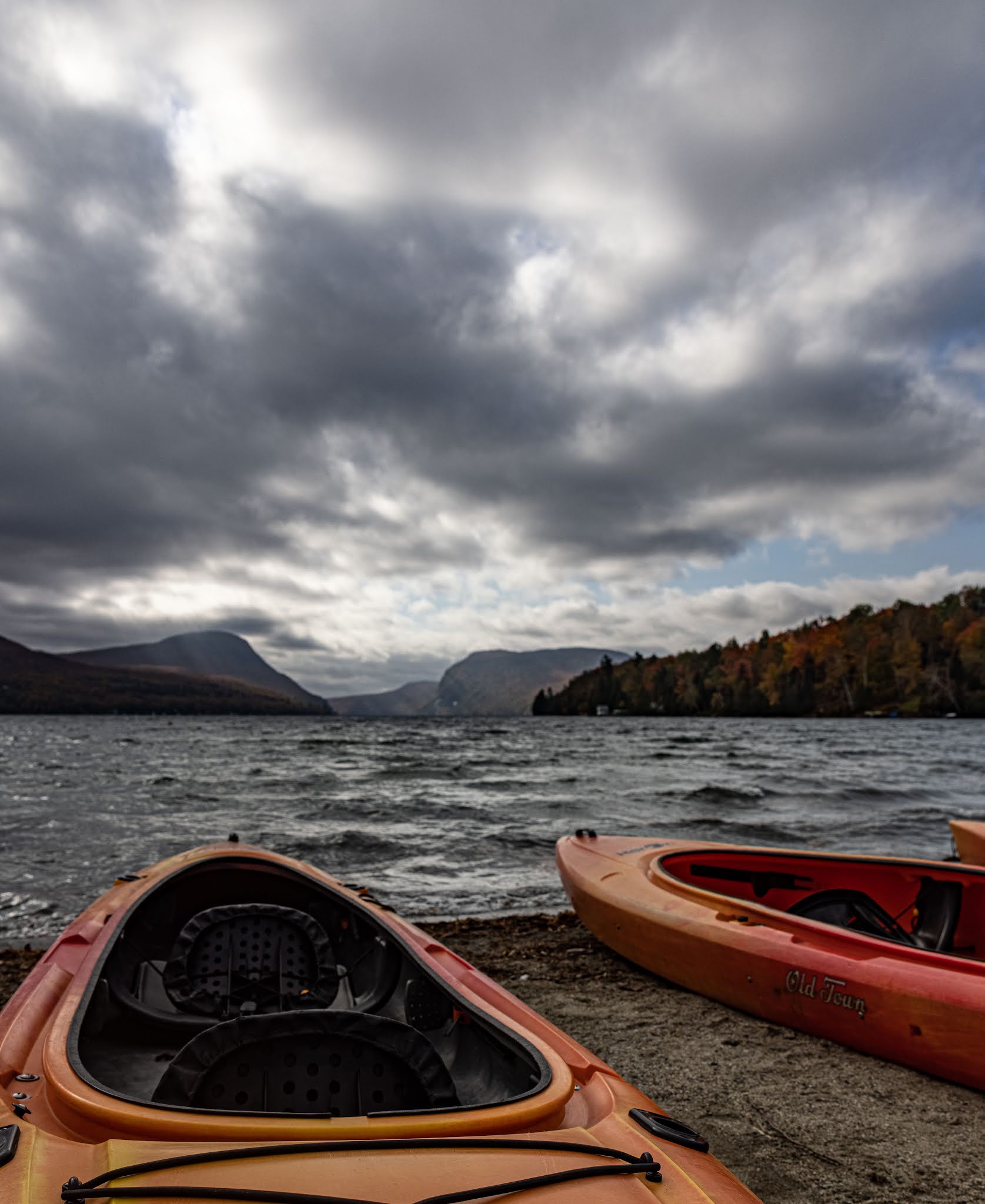 Arriving at the lake, the first thing we noticed was the robust southern wind that we would be paddling directly into, which was raising some surface chop and small whitecaps. We threw on protective layers and hopped into our 2-person kayak, started our GPS trackers and headed out onto the water. While Rob and I were actually moving well considering the wind, our kayak was taking on a significant amount of water. Every minute or two, a little wave would break over the bow of the kayak and deposit a few cups of water onto me and into the cockpit. This was no big deal initially, but obviously, as this continued it could become quite a big deal. We found that the best way to limit this was to closely draft nearby team Rootstock Racing's canoe. This was initially easy but, as more and more water ended up in our boat, it became more difficult and then impossible. About 2/3 of the way across, we needed to head to shore and dump out water. After this we resumed our previously good speed. We heard that several teams behind us required assistance on the lake, including a capsizing - quite an intimidating start to the race. I was a little bummed that the immediacy of the paddling situation occupied the attention we could have payed to the incredibly scenic surroundings.